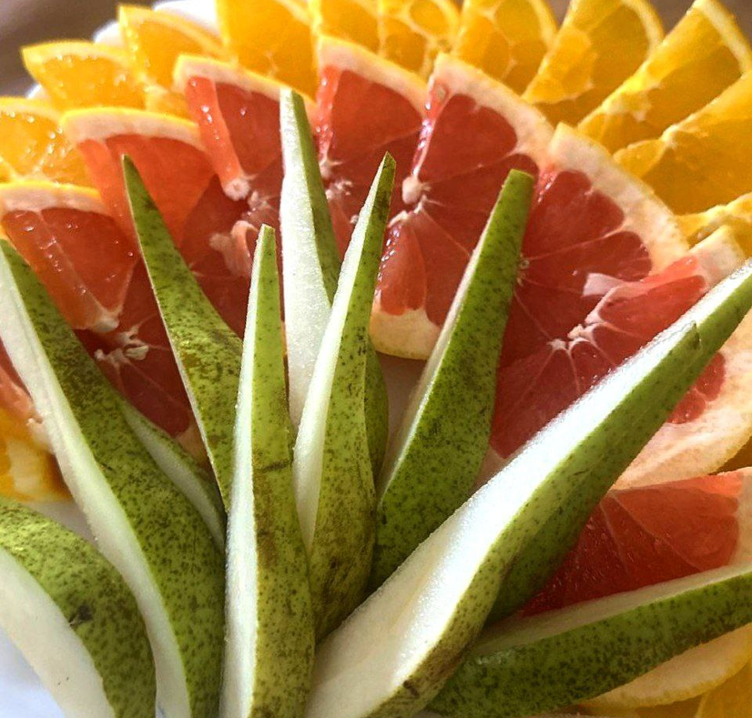 груша, апельсин, грейпфрут