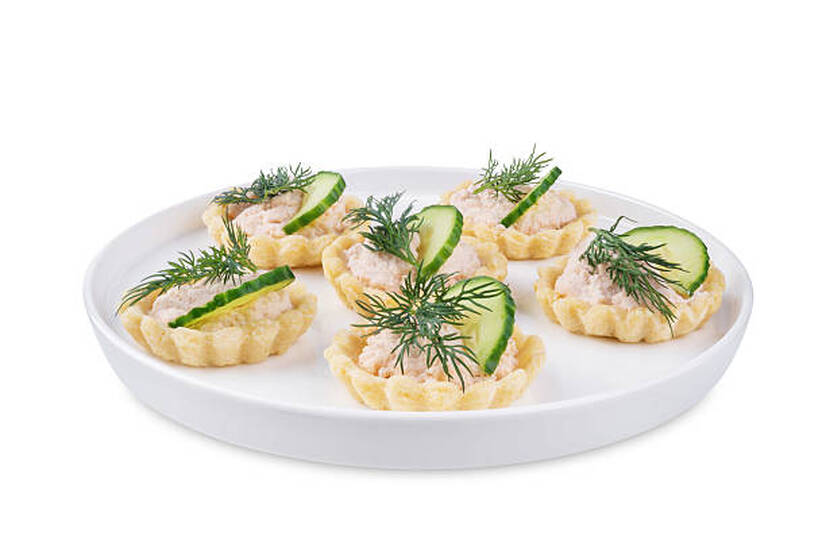 Тарталетка, філе куряче , сир твердий, зелень , маслини ,майонез