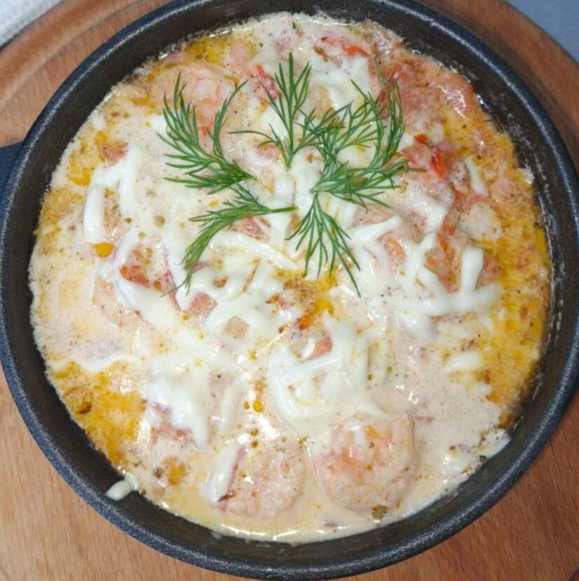 Креветки у сирному соусі