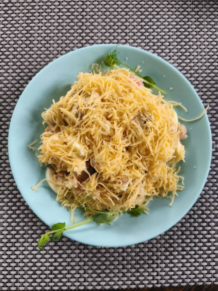 Куряче філе , мариновані гриби, яйце , сир твердий,цибуля,майонез