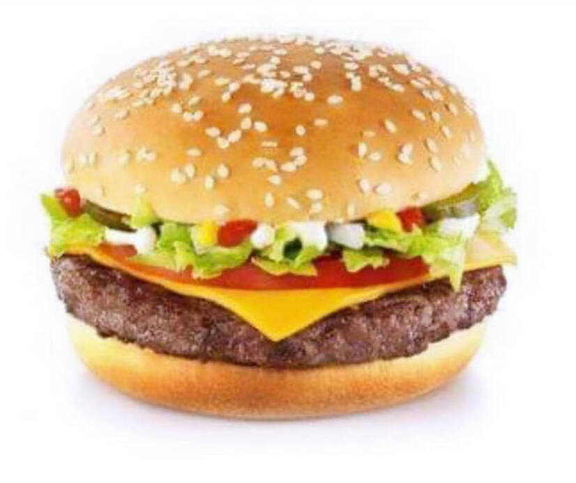 Булка, соус, цибуля, огірок солоний, котлета з яловичини, сир чеддер, помідор, айсберг