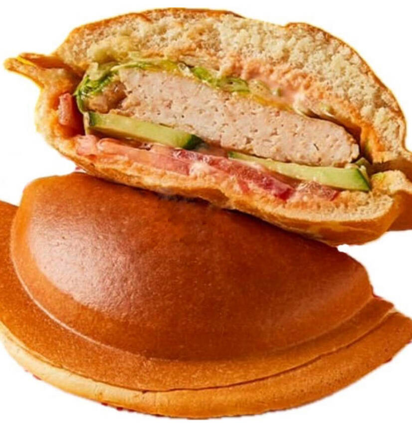 Булка Бріош, айсберг, свіжий огірок, помідор, куряча котлета, сир чеддер, часниковий соус