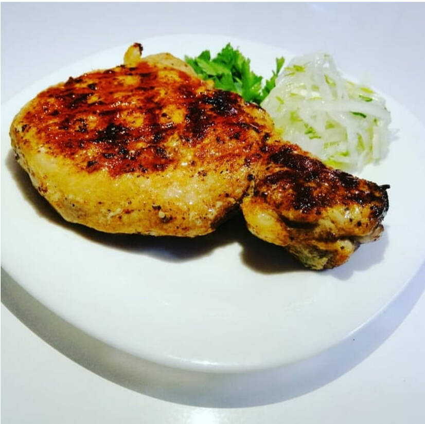 Стейк свиний, цибуля маринована