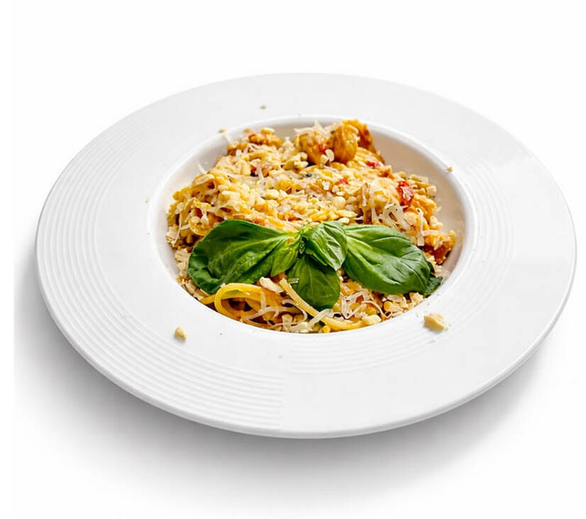 Куряче філе, томатний соус, перець чилі, базилік, сир пармезан, горішки