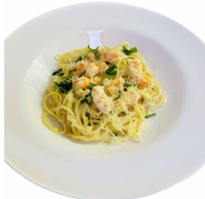 Вершковий соус, креветки, часник, сир пармезан, зелень