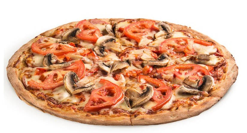 Томатний соус, салямі, шинка, болгарський перець, томати, печериці, сир