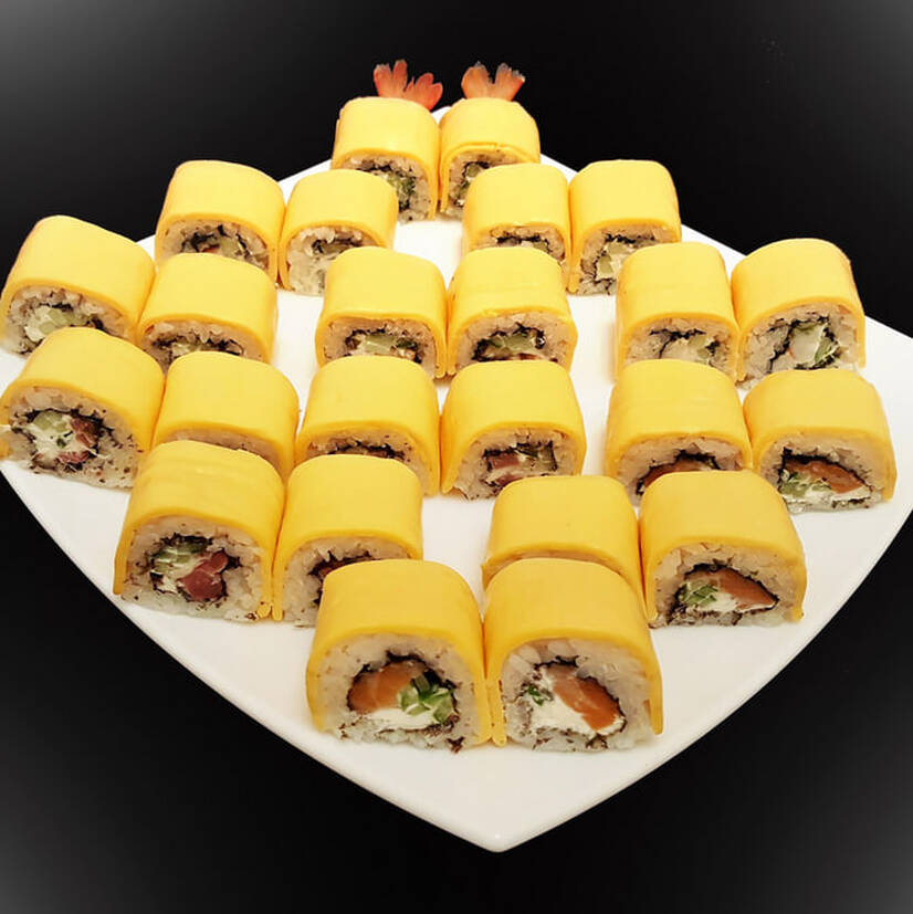 Рис, огірок, сир, сир Чеддер (лосось, вугор, тунець, креветка)