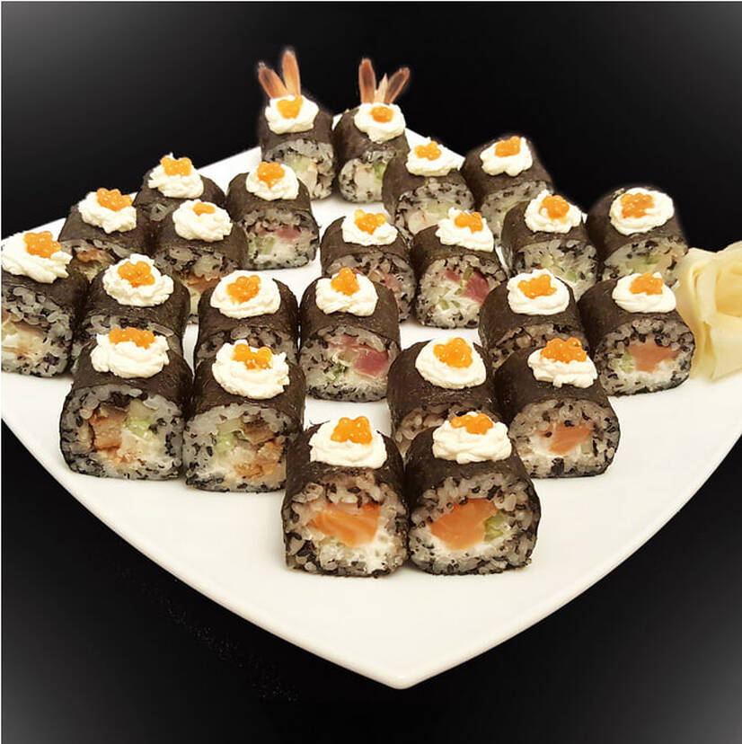 Рис, огірок, сир, кунжут, ікра (лосось, вугор, тунець, креветка)