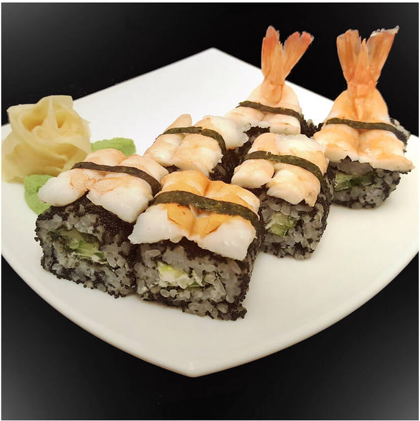 Рис, огірок, сир, креветка, тобіко
