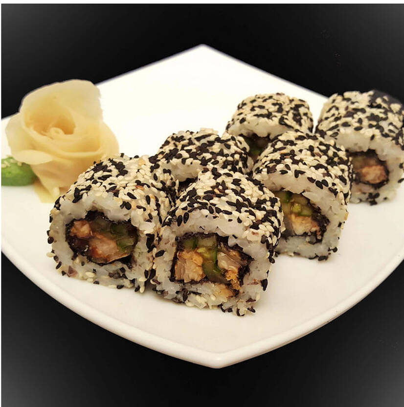 Рис, огірок, спайсі соус (гострий), кунжут, вугор