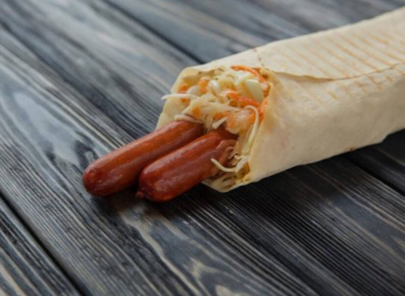 лаваш, мисливська сосиска, соус, салат