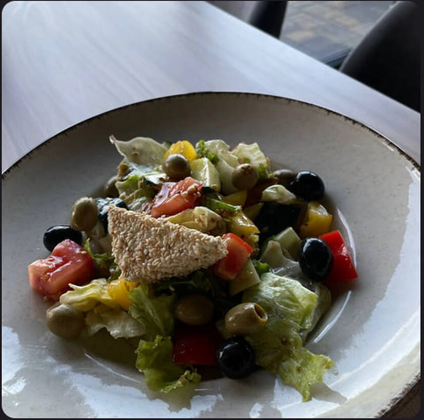 Склад: свіжий огірок, свіжий помідор, болгарський перець, сир фета, кунжут, мікс салату, фірмовий салатний соус.