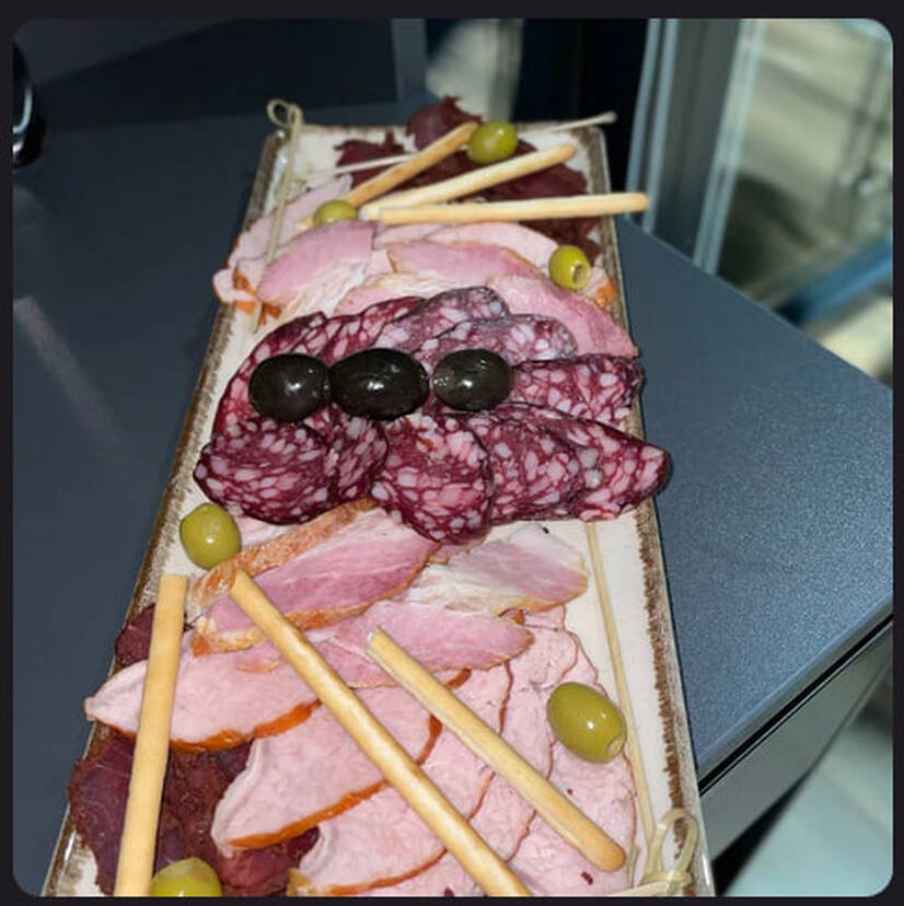 Склад : шинка, грудинка, в'ялений томат, салямі СК, салямі ПК, оливки, маслини