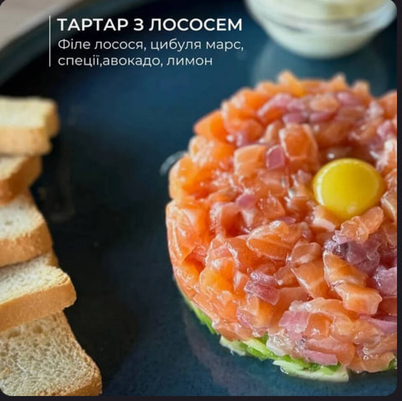 Склад : філе лосося, цибуля марс, спеції, авокадо, лимон